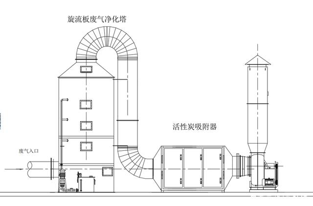 1.噴淋塔+干式過濾器預處理+活性炭吸脫附+催化燃燒;