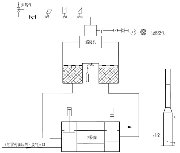 其原理是把有機(jī)廢氣加熱到760攝氏度(具體需要看成分)以上,使廢氣中的VOC在氧化分解成二氧化碳和水。氧化產(chǎn)生的高溫氣體流經(jīng)特制的陶瓷蓄熱體,使陶瓷體升溫而“蓄熱”,此“蓄熱”用于預(yù)熱后續(xù)進(jìn)入的有機(jī)廢氣。從而節(jié)省廢氣升溫的燃料消耗。陶瓷蓄熱室應(yīng)分成兩個(gè)(含兩個(gè))以上,每個(gè)蓄熱室依次經(jīng)歷蓄熱-放熱-清掃等程序,周而復(fù)始,連續(xù)工作。蓄熱室“放熱”后應(yīng)立即引入適量潔凈空氣對(duì)該蓄熱室進(jìn)行清掃(以保證VOC去除率在98%以上),只有待清掃完成后才能進(jìn)入“蓄熱”程序。否則殘留的VOCS隨煙氣排放到煙囪從而降低處理效率。