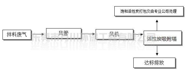 拌料固化產(chǎn)生的屬于揮發(fā)性的有機(jī)廢氣,通過車間內(nèi)合理布管,由引風(fēng)機(jī)抽至車間外處理后排放,處理能力為18000m3/h,系統(tǒng)設(shè)于車間樓頂。